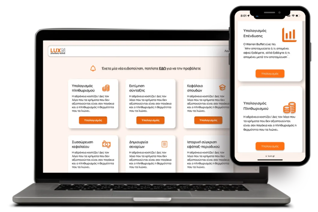EXCELLENT Based on 126 reviews Posted on Valandis BilikaidisTrustindex verifies that the original source of the review is Google. Πολύ χρήσιμη εφαρμογή το Lux βοηθάει πολύ τους υποψήφιους πελάτες στο να καταλάβουν την αναγκαιότητα της αποταμίευσης καθώς και στην κατανόηση των επενδυτικών προγραμμάτων! Ευχαριστούμε πολύ για αυτό το τόσο χρήσιμο εργαλείο που βοηθάει την καθημερινότητα μας ως σύμβουλοι!Posted on giannos bakratsasTrustindex verifies that the original source of the review is Google. Πολύ καλή Πλατφόρμα!! Βοηθάει αρκετά στις Πωλήσεις Επενδυτικών Προιόντων και στο να κατανοήσει ο πελάτης γιατί η Συμπληρωματική Σύνταξη είναι απαραίτητη!!!! Βέβαια,θέλει εμπλουτισμό με περισσότερες εταιρείες,ακόμα. Πάντως ,πολύ καλή δουλεία!!!Keep Going!!!Posted on Dimitroula NoniTrustindex verifies that the original source of the review is Google. Εξαιρετικοί!Verified by TrustindexTrustindex verified badge is the Universal Symbol of Trust. Only the greatest companies can get the verified badge who has a review score above 4.5, based on customer reviews over the past 12 months. Read more