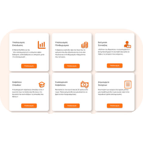 Επιλέγεις σενάρια με βάση εισφορές, επιτόκια, διάρκεια – με ρεαλιστική εικόνα απόδοσης.